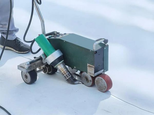 TPO 卷材按弹线位置进行铺设并机械固定,热风焊接搭接边。