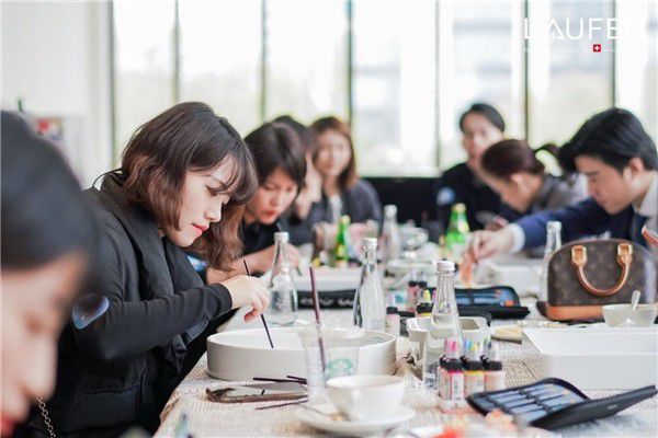 为了让每一位设计师身临其境地感受蓝钻置物盆的魅力,主办方为设计师精心策划了一场互动艺术体验:DIY手绘瑞士劳芬蓝钻置物盆,向设计师传递了瑞士劳芬经典工艺及传承精神。