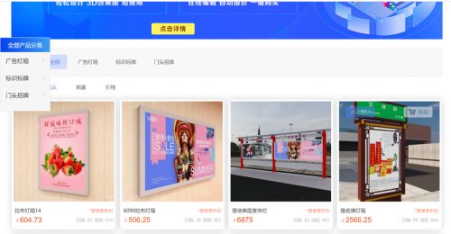 标牌港作为行业头部企业,涵盖广告标牌领域1000+场景、提供1000+产品形态,其覆盖场景包括商超连锁类、轨道交通类、公共环境类、工装家装类、展示展览类;产品覆盖标识标牌类、广告灯箱类、门头招牌类、广告材料类、党政宣传类,逐步形成以行业产品为基础的产品标准化装配,通过互联网数字技术3D展现产品和场景,为行业用户提供智能设计、自动报价、一键购买、项目托管等服务。
