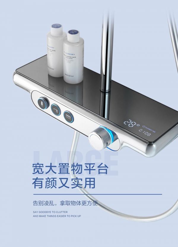 日丰卫浴置物淋浴RF-98199P,柔和出水,时尚设计,智能数控,多种核心设计带来极致沐浴体验,深度感受,智能对于生活细节的改变!
