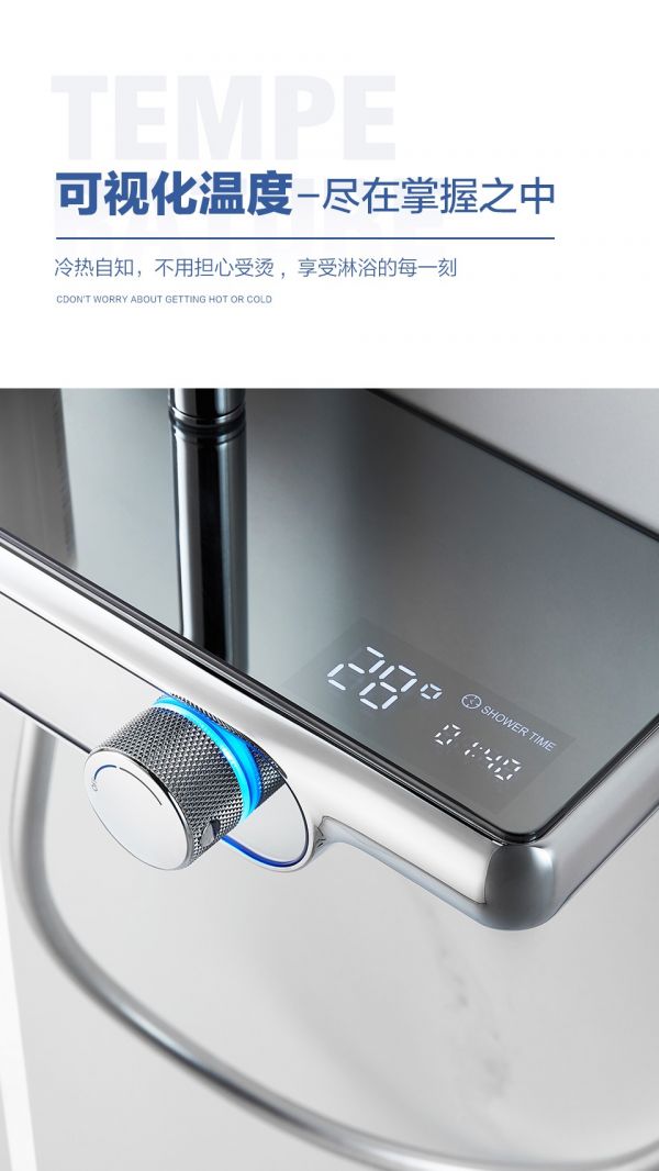2、智能设计:水温、用水量实时显示,冷热自如,节约有度;