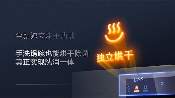 所谓“病从口入”,餐具、饮食是疾病传染传播的一大途径。而在倡导健康消费的今日,随着健康观念愈发深入人心,诸如洗碗机、消毒柜这样的健康家电逐渐走进了千家万户。.其中,洗碗机在日常洗涤油腻餐具时,烘干效果不佳就很有可能还残留一些对人体不利的细菌,加之很多家庭采用“自然”晾干的方式处理洗完的餐具,潮湿的碗篮以及暴露在外的餐具,都可能遭遇二次污染。消毒柜虽然可以“接力”洗碗机,完成给餐具消毒的工作,但不得不添置一台机器,使本已满满当当的厨房空间更显局促。